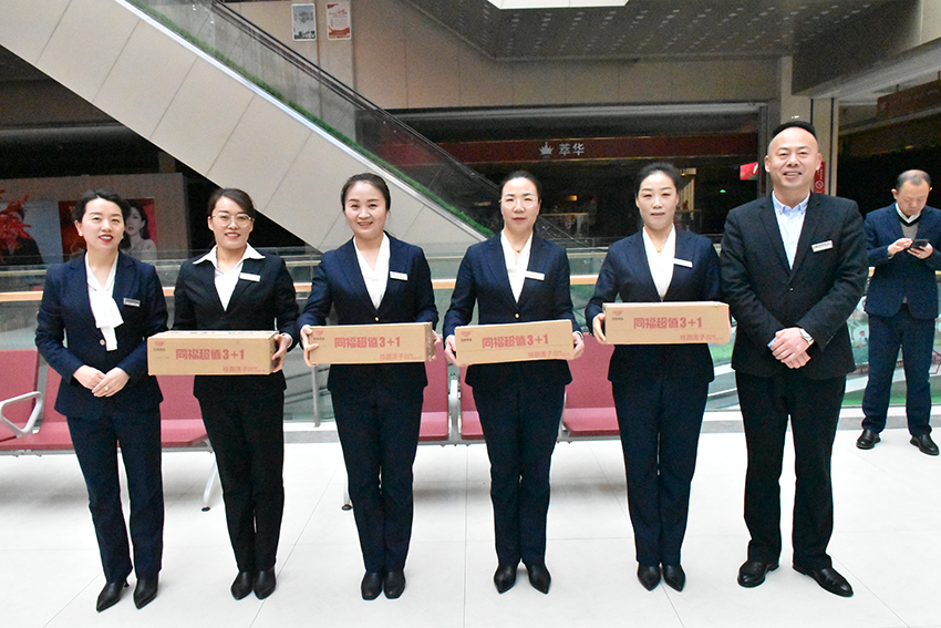 金威購物廣場(chǎng)總經(jīng)理韓映紅與獲獎員工合影